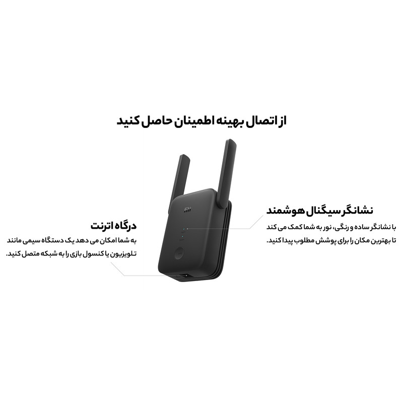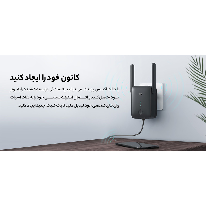 بسیاری از اوقات هست که آنتندهی مودم در همه نقاط خانه خیلی خوب نیست و استفاده شما را دچار اختلال میکند و مجبور خواهید شد که برای دریافت بهتر سیگنال اینترنت، بارها جای خود را تغییر دهید تا بهترین نتیجه برای شما حاصل شود. تقویتکنندههای آنتن وای فای راه حلی برای کسانی است که مودم خود را در محیطی به کار میبرند که احتمال ضعیف شدن سیگنال وای فای مودم زیاد است. تقویت کننده آنتن وای فای شیائومی Xiaomi Mi WiFi Range Extender AC1200 RA75 یکی از بهترین وسیلههایی است که میتوانید با استفاده از آن، مشکل آنتن ندادن و ضعیف بودن موج وای فای را بر طرف کنید. تقویت کننده وای فای شیائومی دارای دو آنتن قوی است که پس از اتصال به پریز برق و انجام تنظیمات مربوطه میتواند سرعتی مجموعا تا 1200Mbps را در اختیار شما بگذارد. از این قابلیتهای دیگر این دستگاه، امکان اتصال مستقیم دستگاههایی مانند تلویزیون، کنسول بازی و... به شکل مستقیم به خود تقویت کننده است. روی بدنه (قسمت زیرین) دستگاه یک پورت Ethernet قرار داده شده است که میتوانید با اتصال دستگاههای نام برده شده به آن، مستقیما از اینترنت استفاده کنید. این تنها قابلیت تقویت کننده نیست. اگر مودم شما آنتن نداشت، میتوانید با استفاده از کابل شبکه و اتصال آن به مودم، به اینترنت و وای فای دسترسی پیدا کنید. کابل شبکه را از مودم به دستگاه تقویت کننده متصل کنید و سپس به اینترنت دسترسی داشته باشید. به این ترتیب، محدودیتهای شما در نوع استفاده، بسیار کمتر خواهد شد. باید به این نکته نیز اشاره کنیم که روی تقویت کننده یک نشانگر LED کوچک نیز قرار داده شده است که به صورت هوشمند به اطلاع شما خواهد رساند که بهترین محل برای قرارگیری اکستندر شیائومی برای آنتن دهی کجاست. گفتنی است که یک دکمه WPS برای اتصال به اینترنت بدون زدن رمز و یک کلید Reset برای تنظیمات مجدد روی دستگاه قرار داده شده است. برای راهاندازی این ریپیتر وای فای کافی است آن را به پریز برق متصل و سپس با نرم افزار Mi Home به آن متصل شوید و تنظیمات لازم را انجام دهید. تقویت کننده آنتن شیائومی میتواند تمام سیگنالهای وای فای رمزنگاری شده توسط WPA/WPA2 را که با سیگنالی معادل 2.4 گیگاهرتز و همچنین 5 گیگاهرتز کار میکنند، تقویت کند و موج سیگنال را افزایش چشمگیری دهد.