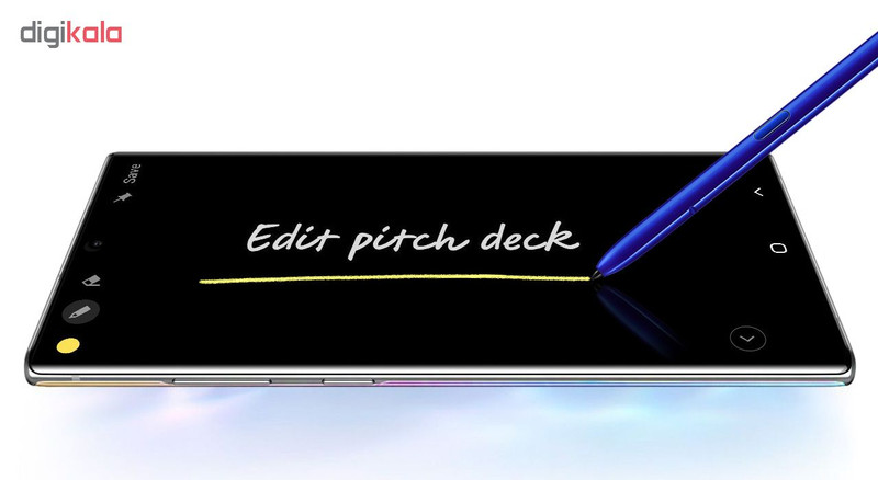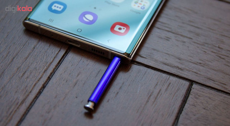 قلم S Pen سامسونگ در سال های گذشته با بهبودهایی همراه بوده است اما از لحاظ طراحی تقریبا از زمان معرفی نوت 5 تغییر خیلی زیادی نداشته است. قلم نوت 10 هم از این قاعد مستثنی نبوده است و همان شکل و ظاهر را حفظ کرده اما حالا کار کردن با آن کمی راحت تر و لذت بخش تر شده است. این قلم به دلیل استفاده از پلاستیک یک تکه، بر خلاف نسخه قبلی خود با رنگ یکدست ارائه شده است. ابعاد این قلم برابر با 0.58 × 0.43 × 10.5 سانتی متر است و تنها 3.04 وزن دارد. قلم نوت 10 به فناوری بلوتوث مجهز شده است؛ به این ترتیب می توان از آن به عنوان یک ریموت کنترل با برد 10 متر برای تغیرر اسلاید ها، پخش و ای متوقف کردن ویدیو و همچنین برای عکاسی استفاده کرد. علاوه بر این با استفاده از حرکت دادن قلم به چپ و راست می توان عکس های مختلف گالری را مشاهده کرد و یا می توان با حرکات دادن قلم به سمت بالا و پایین، صدای موزیک در حال پخش را کم و زیاد کرد. با بیرون آوردن قلم، می توان روی صفحه نمایش خاموش گوشی خود یادداشت هایی بنویسید و آن را در نوت سامسونگ ذخیره یا در صفحه همیشه روشن آن را پین کنید.