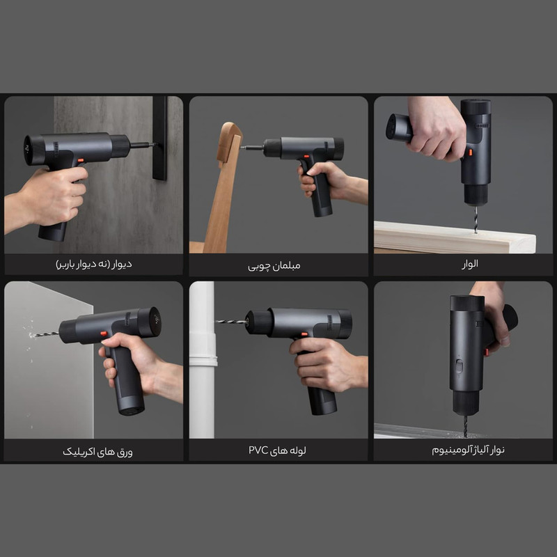 دریل شارژی شیائومی طراحی مکاترونیکیای را بکار گرفته که ایمن بوده و هیچ جرقهای تولید نمیکند. با مکانیک موتور بدون برس، دیگر نیازی به تعویض برس کربنی نخواهد بود، بنابراین عمر طولانیتری به دستگاه میبخشد. حداکثر گشتاور این دریل 30Nm است، در حالی که حداکثر سرعت آن 1400 دور در دقیقه میباشد. میتوان آن را بصورت یکپارچه روی کاج نرم، راش سخت و انواع دیگر چوب و همچنین لوله آلیاژ آلومینیوم، صفحه فولادی و سایر لولههای آب فلزی و پلاستیکی استفاده کرد. همچنین این دریل میتواند به راحتی به اکریلیک و سایر مواد پلاستیکی نفوذ کند (این دریل مناسب سوراخکاری در بتن نمیباشد). نیمه عقب دسته با لاستیک نرم مات TPU پوشانده شده است که هنگام در دست گرفتن احساس راحتی و غیر لغزنده ایجاد میکند و به راحتی تغییر رنگ نداده و چسبندگی نخواهد داشت.