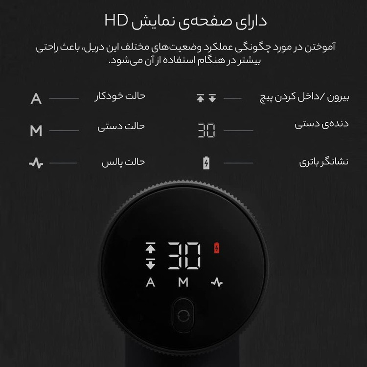 دریل شارژی شیائومی دارای سه حالت عملیاتی دنده دستی، هوشمند و پالسی است. کاربر میتواند با فشار دادن دکمه پایین صفحه نمایش در هر زمان دنده را عوض کند. این سه حالت بسته به اینکه کاربر تازه کار یا متخصص در کار با دریل الکتریکی باشد، برای ارائه سرعت و روشهای مختلف کار طراحی شدهاند. علاوه بر این، مجهز به یک صفحه نمایش با کیفیت بالاست که میتواند حالت عملکرد فعلی و شماره دنده دستی را در لحظه نشان دهد.