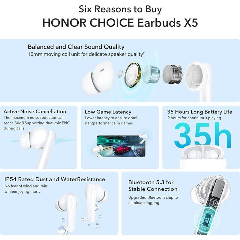 Honor (آنر) از معدود برندهایی است که همیشه به طراحی ساده و مینیمال معتقد و پایبند بوده است و همواره آن را به بهترین نحو پیاده سازی میکند. هندزفری بلوتوث دوتایی HONOR CHOICE Earbuds X5 جدیدترین هندزفری بلوتوثی Honor که در May 2023 تولید شده، نیز از این قاعده مستثنی نیست و طراحی بسیار ساده و یکدستی دارد.