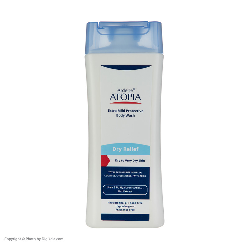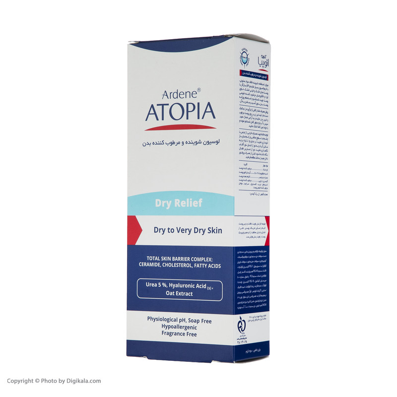 لوسیون شوینده و مرطوب کننده درای ریلیف، حاوی 5% اوره است. این درصد از این ماده، قدرت رطوبترسانی فوقالعادهای دارد. همچنین قادر به برطرف کردن لایهی فرسودهی پوست است که این ویژگی با توجه به ماهیت محصول بسیار خوشایند به نظر میرسد. تامین رطوبت پوست در این شوینده، توسط هیالورونیک اسید، اسیدهای چرب، کلسترول و سرامید موجود در محصول نیز صورت میگیرد.